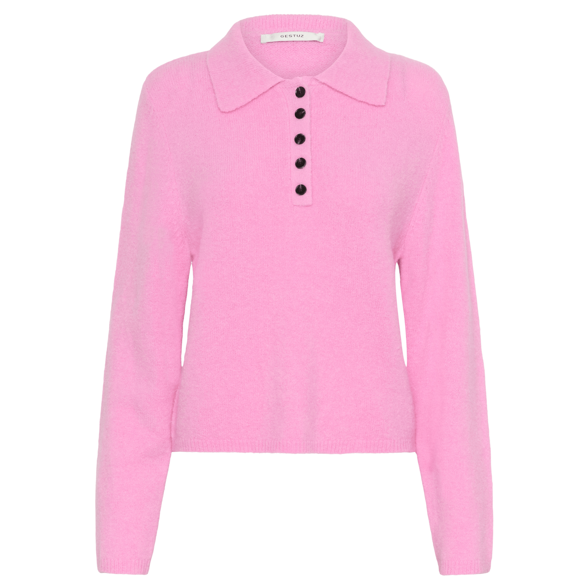 Voor wie liever zacht en cosy gaat: de beige Gestuz knit met zilver lurex is je nieuwe winterfavoriet. Warm genoeg voor koude dagen, subtiel genoeg voor je moeder om te zeggen: “Wat zie je er elegant uit.” En als ultieme comfort-optie: de zachte roze polo knit van Gestuz – alsof je in een knuffel zit, maar wel modieus.